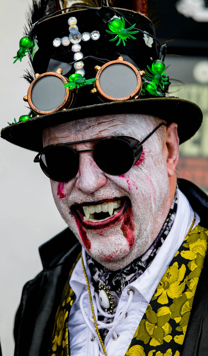 We attend the Whitby Goth Weekend (a three-day event) every April and November to photograph the Goths in their amazing costumes and makeup.