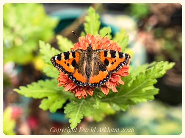 You never know when you will have the opportunity to capture a picture of a beautiful small tortoiseshell butterfly. (The image has been heavily cropped to avoid disturbing this shy creature)