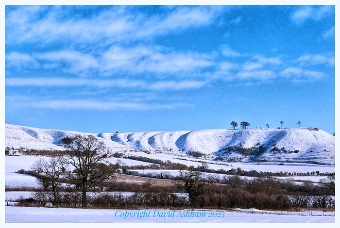 A feature of the escarpment is a series of ravines or short gullies. Some thought these gullies were the result of melting icebergs at the end of the ice-age, during a previous era of global warming. I am beginning to doubt that theory, believing that natural erosion, by wind and water, and lack of hillside cultivation is a more likely explanation. Whatever the cause, under glancing sunlight they become a very interesting feature to photograph. And after snowfall, they add interest to the summit of the Downs, at least to my eyes.